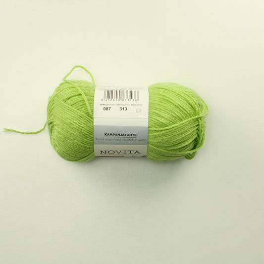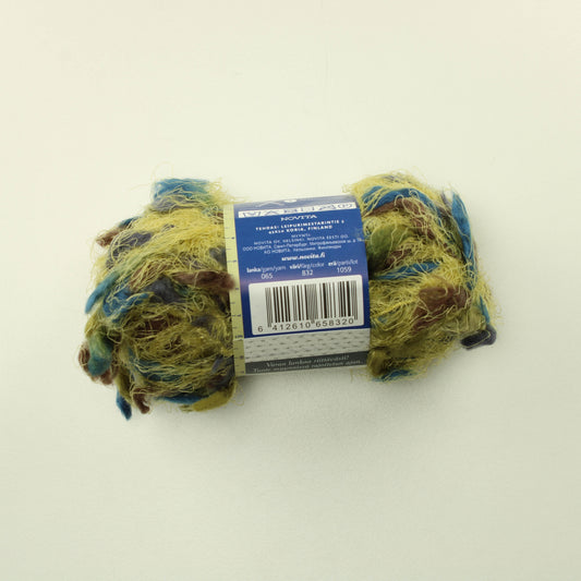 Novita kauniita lankoja, puikkoja sekä lehtiä. Kaikki uuden veroisia, mutta kierrätettyjä.