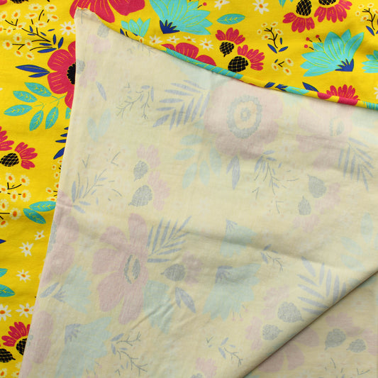 Monivärinen kukkaköynnöskuvioinen Vaatetuskangas - Pala