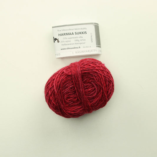 Rva Silmusolmu käsinvärjätty Harmaa sukkis 21g - Karpalo
