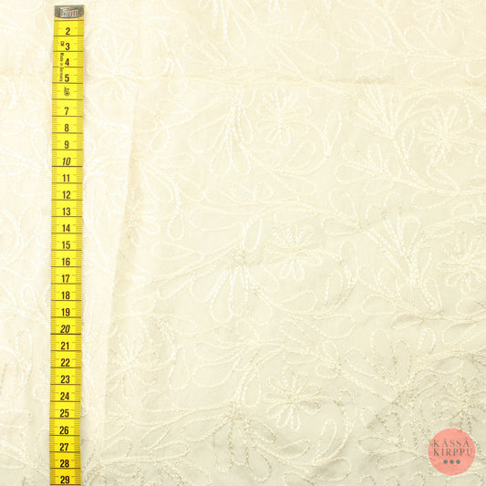 Valkoiset kukat vaaleansinisellä Viskoosikreppi - Pala