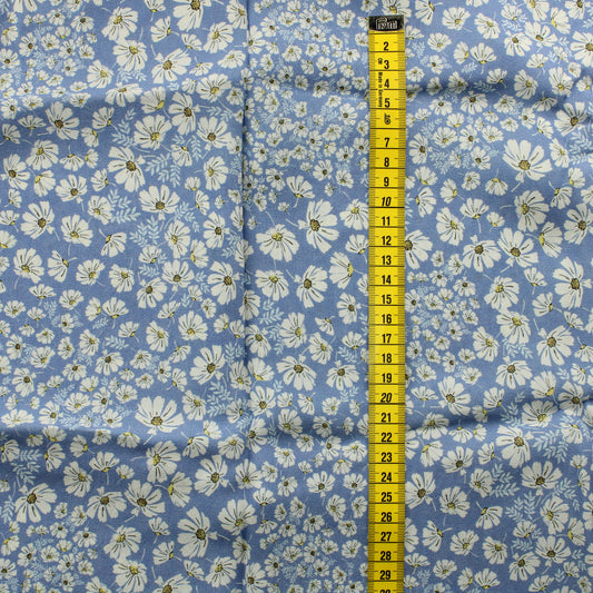 Valkoiset kukat vaaleansinisellä Viskoosikreppi - Pala