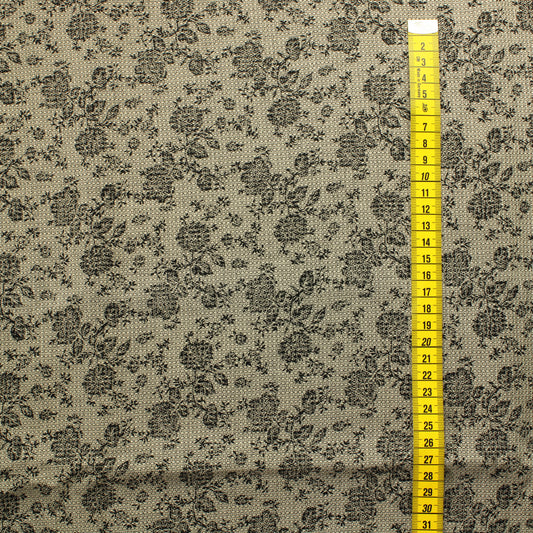 Greige-musta kukkakuvioinen vohvelimainen Vaatetuskangas - Pala