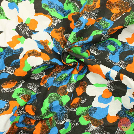 Satin-bonded bright-colored striped cotton fabric - Piece