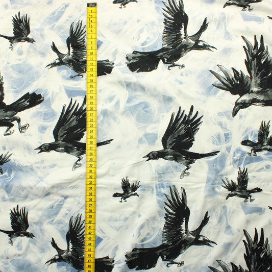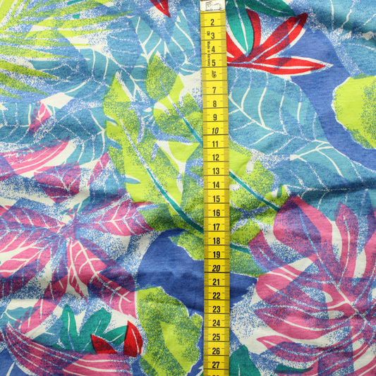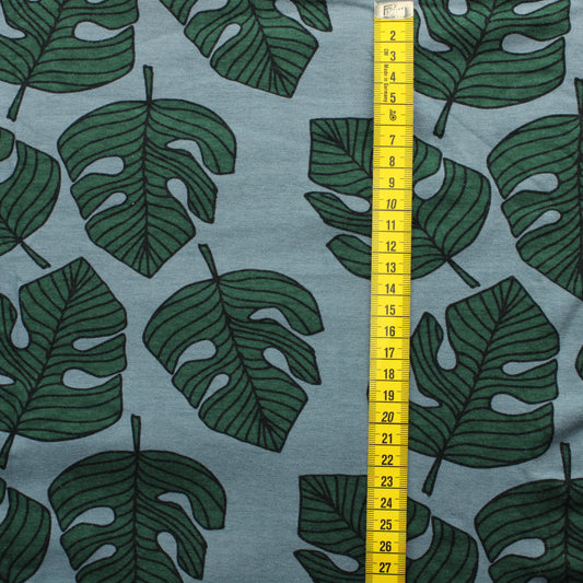 Sinisävyinen Lehtikuvioinen Ohut Trikoo - Pala