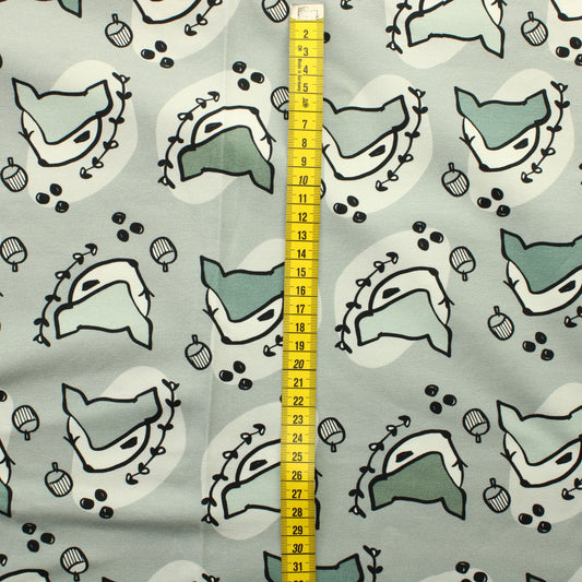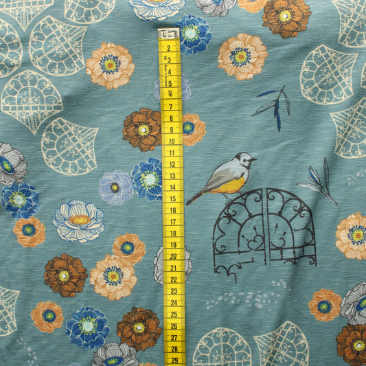 Siniharmaa kukkakuvioinen Trikoo - Pala