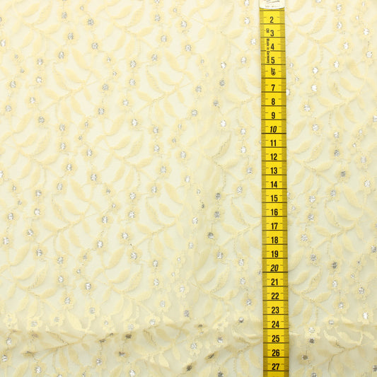 Keltainen hopeakoristeinen kukkaköynnös Pitsikangas - Pala