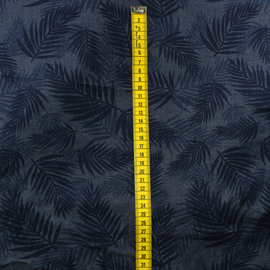Palmunlehvä kuvioinen Farkkukangas - Pala