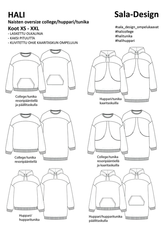 Hali - Women's oversize sweatshirt/hoodie/tunic - Paper pattern