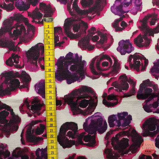 Valkoinen Sisustuskangas violettisävyiset kukat - Pala
