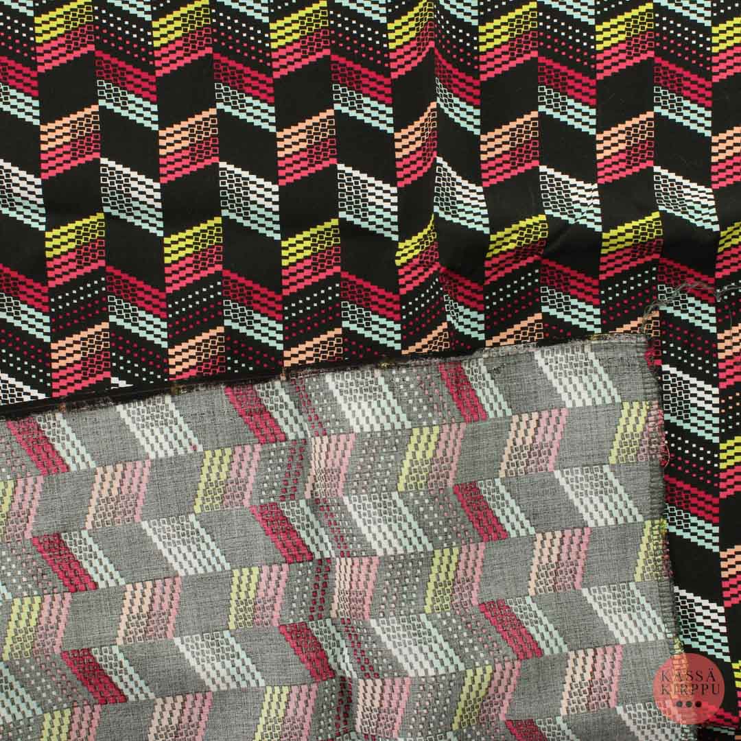 Suosittelemme kaikille kankaille pienemmän tilkun koepesua ennen koko kankaan pesua. Emme vastaa pesussa tapahtuneista värimuutoksista.