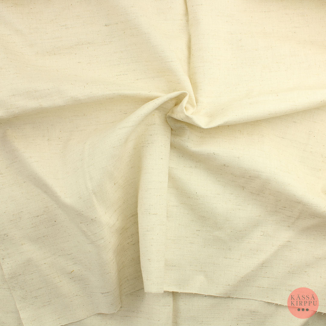 Keskipaksu ja tiheäsidoksinen puuvillamainen kangas, jossa kuitenkin selkeästi tekokuituja mukana.