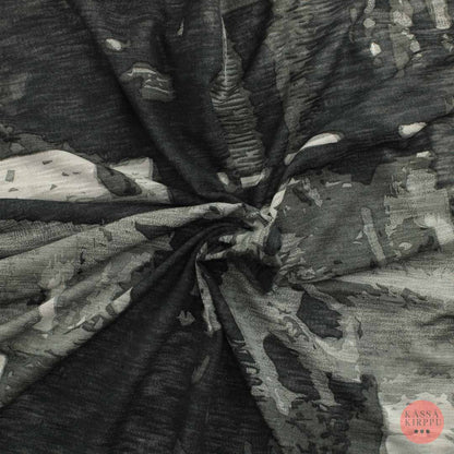 Ohut, tekokuituinen, läpikuultava ja hieman joustava neulos.