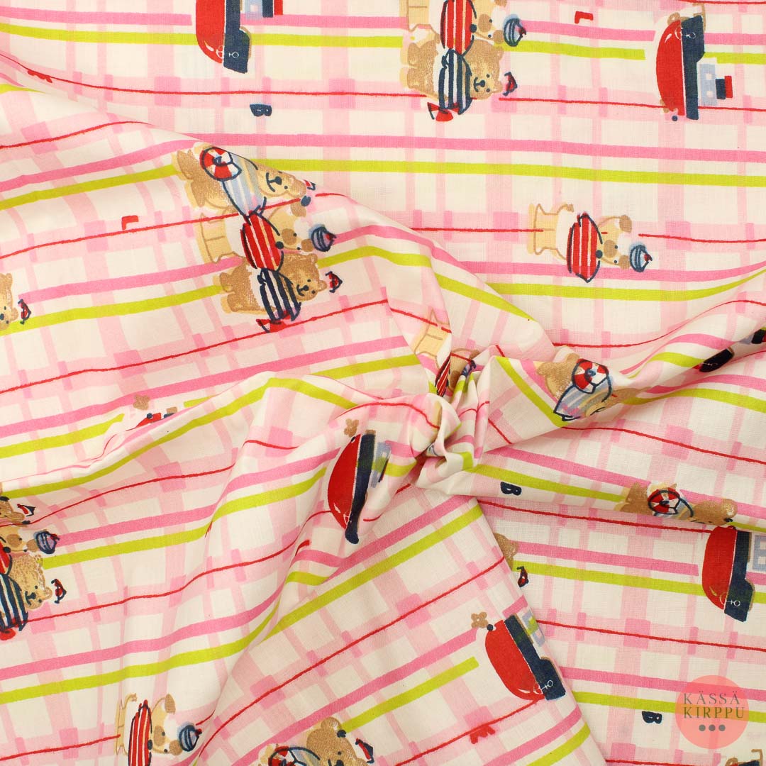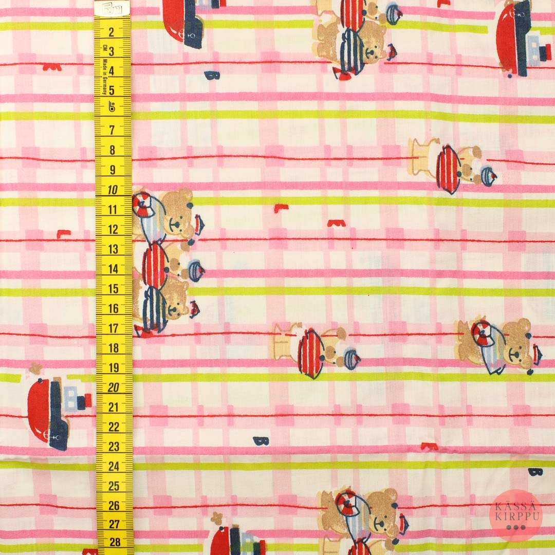 Suosittelemme kaikille kankaille pienemmän tilkun koepesua ennen koko kankaan pesua. Emme vastaa pesussa tapahtuneista värimuutoksista.