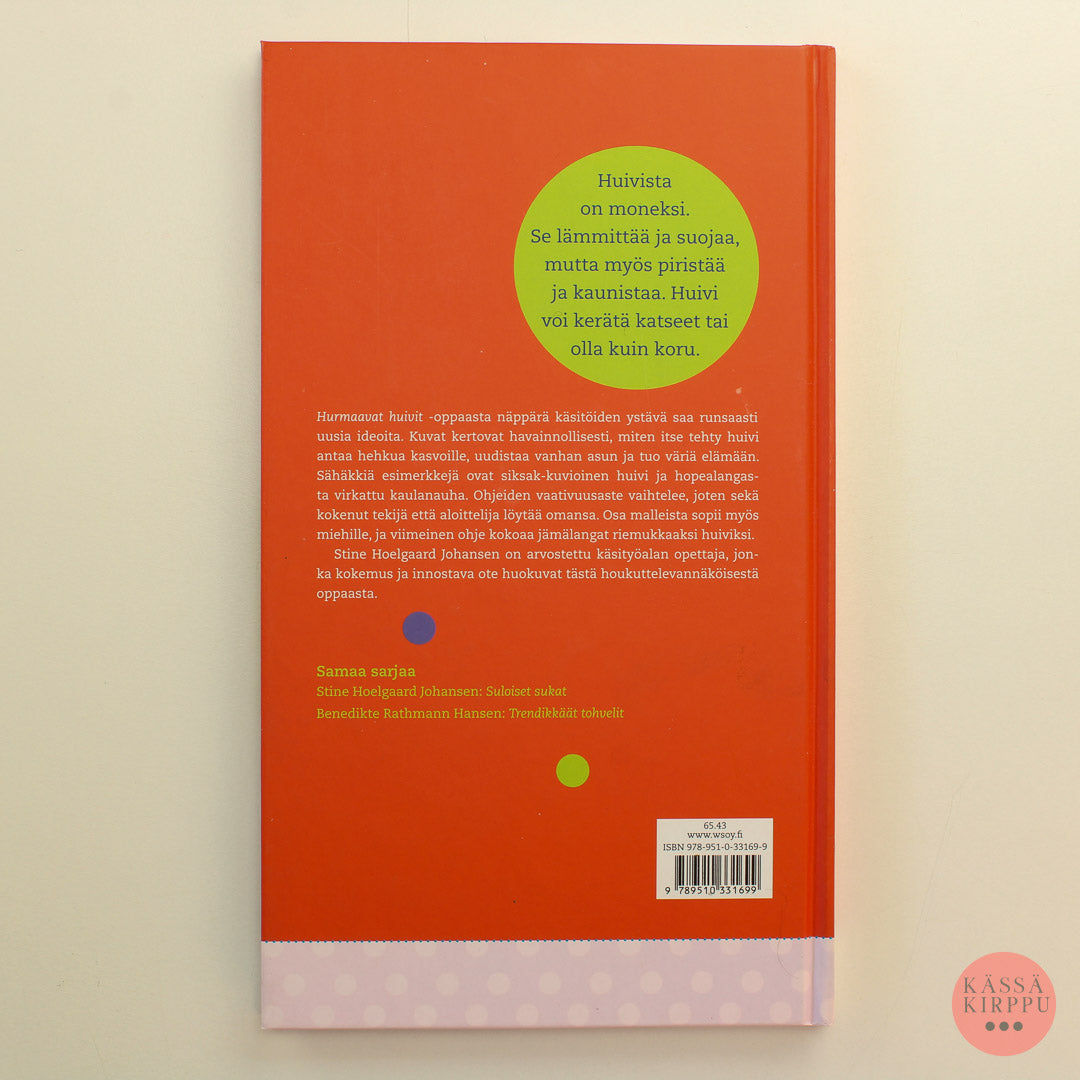 Hurmaavat huivit -oppaasta näppärä käsitöiden ystävä saa runsaasti uusia ideoita. Kuvat kertovat havainnollisesti, miten itse tehty huivi antaa hehkua kasvoille, uudistaa vanhan asun ja tuo väriä elämään. Sähäkkiä esimerkkejä ovat siksak-kuvioinen huivi ja hopealangasta virkattu kaulanauha. Ohjeiden vaativuusaste vaihtelee, joten sekä kokenut tekijä että aloittelija löytää omansa. Osa malleista sopii myös miehille, ja viimeinen ohje kokoaa jämälangat riemukkaaksi huiviksi.
