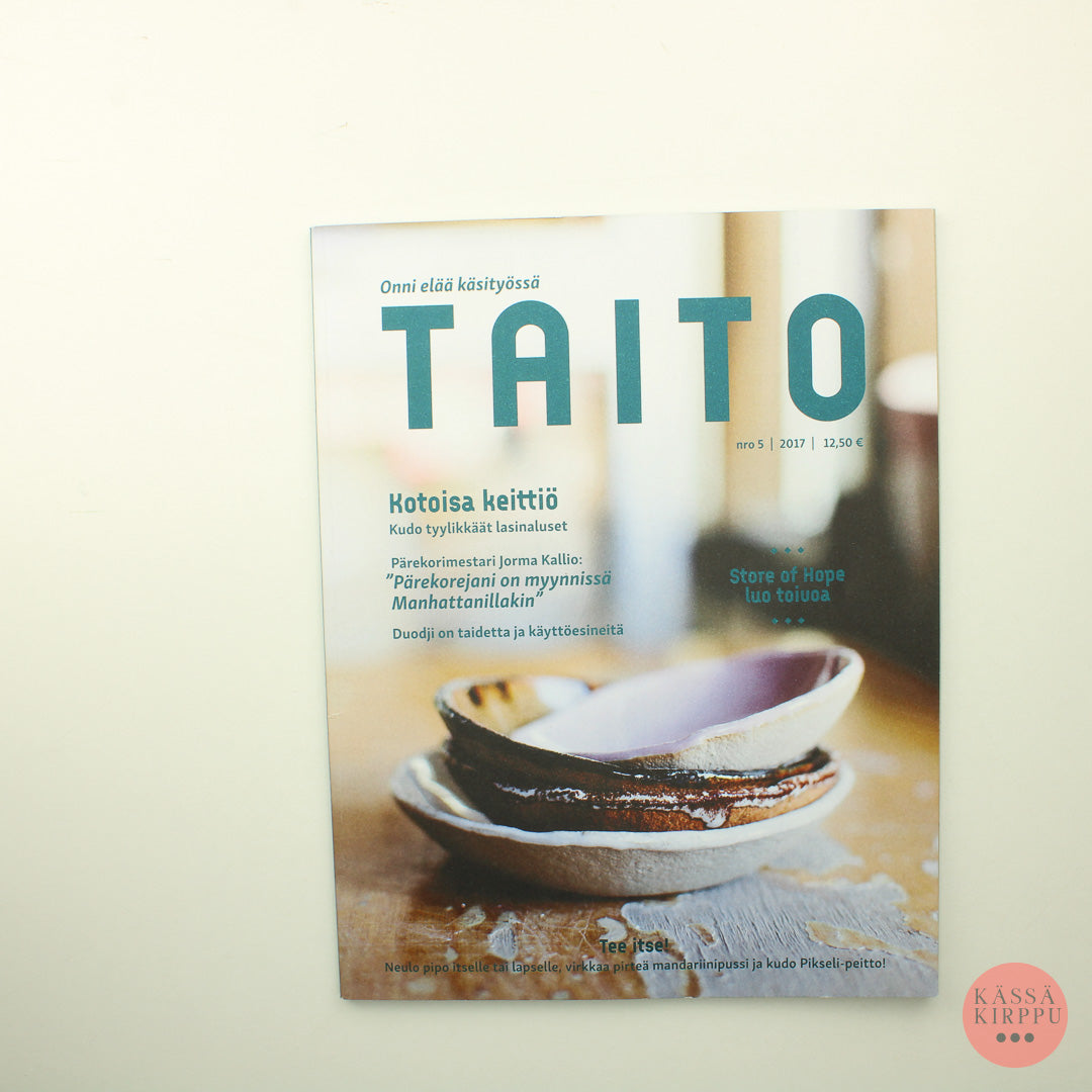Taito on suomalaisen käsityön lehti. Taito on visuaalisesti vangitseva, tuoretta tietoa ja käsityöperinteitä yhdistelevä lehti, joka sisältää paitsi uusia, varta vasten Taidolle suunniteltuja ohjeita myös artikkeleja, jotka tuuppaavat luovuuden liikkeelle, kannustavat kokeilemaan ja rakastumaan käsitöihin. Kuusi kertaa vuodessa ilmestyvä Taito on ikinuori klassikko, joka puhuu aidoista asioista. Kunto hyvä, osoitetiedot poistettu.