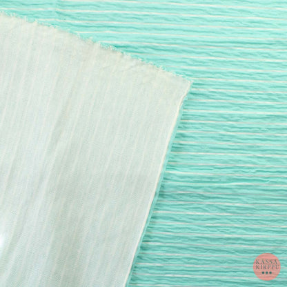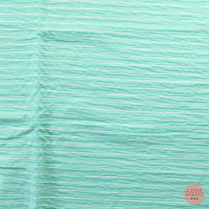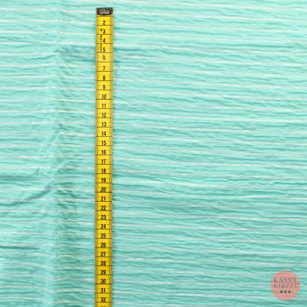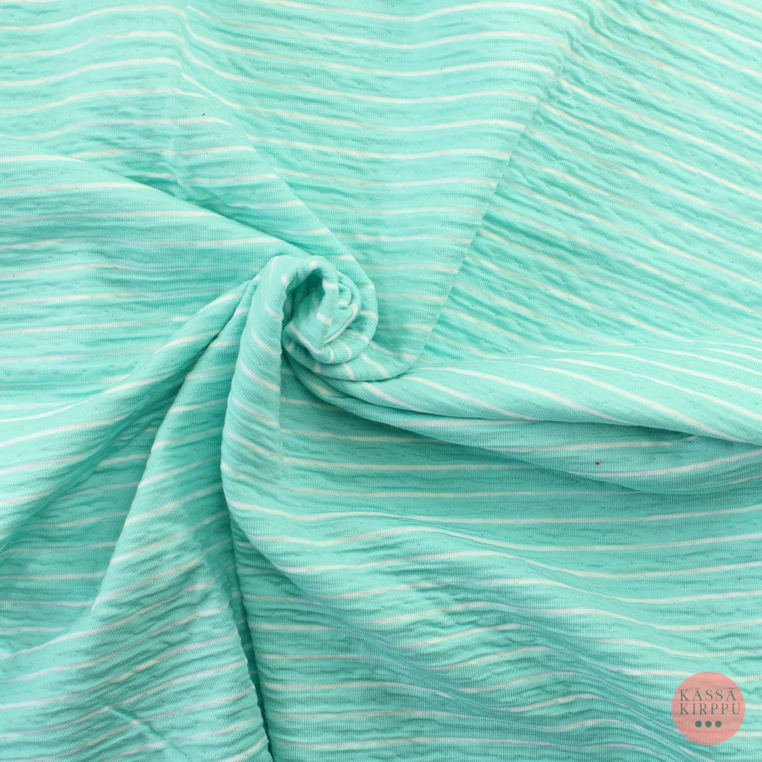 Kaksikerroksinen, hieman joustava neulos. Tekokuitua pääasiassa. Ryppypintainen.