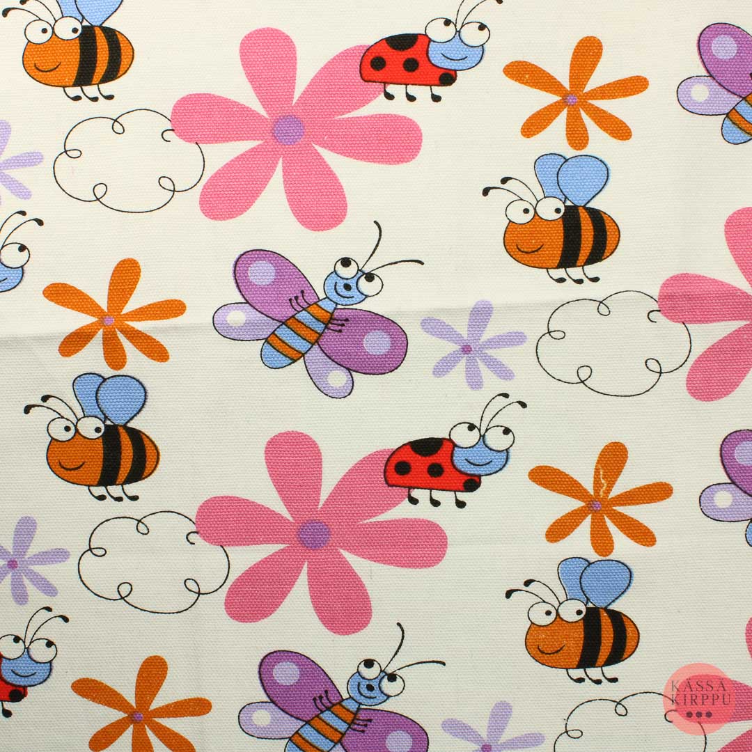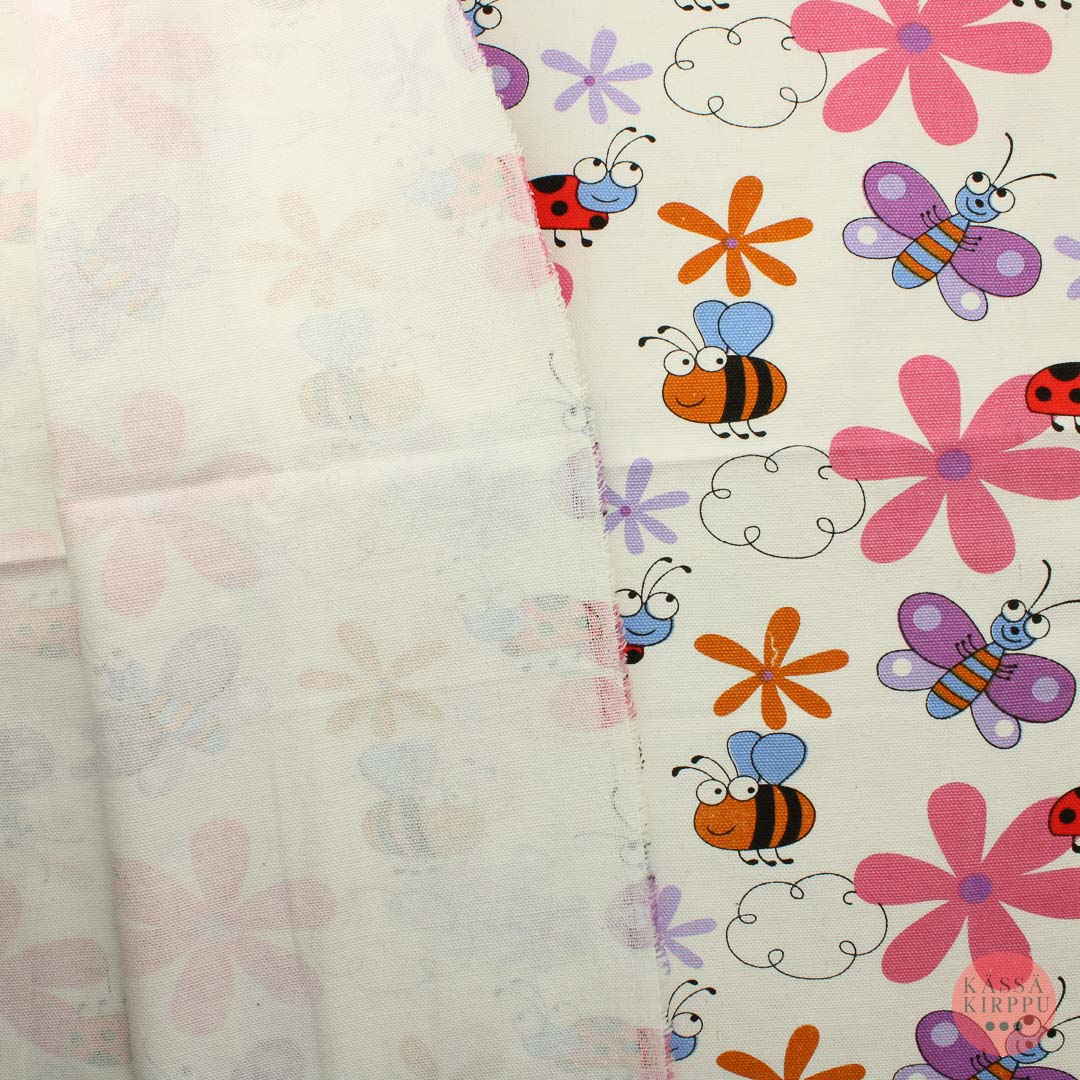 Valkoinen kirjavat kukat ja ötökät kuvioinen Puuvillasekoite - Pala