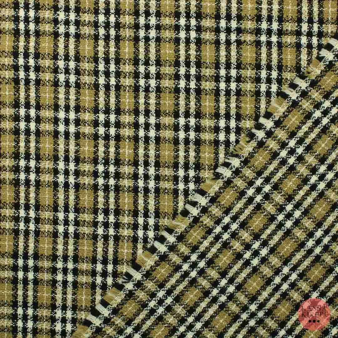 Vihertävä-musta ruutu Vaatetuskangas - Pala